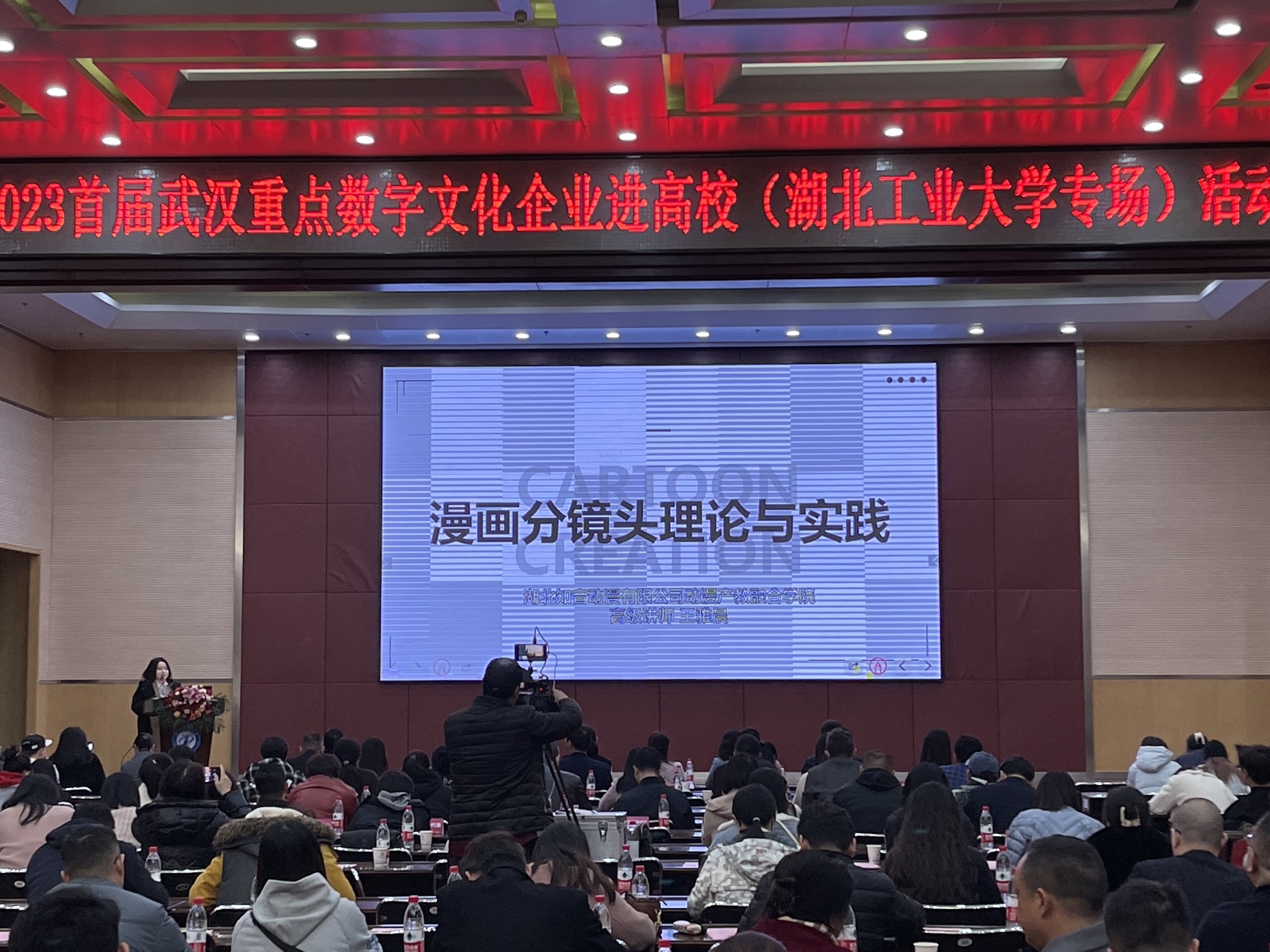 本次活动是2023首届武汉重点数字文化企业公开课第二次走进高校。公开课现场,武汉市启视传媒有限公司创始人、CEO王青海,武汉渲奇数字科技有限公司CEO 李昱谷,湖北知音动漫有限公司动漫产教融合学院高级讲师王雅晨,武汉艺画开天文化传播有限公司人力资源总监胡静分别围绕《不忘初心,我经历的五次互联网流量红利》《不同的语言,共通的热爱!VR曾侯乙编钟音乐游戏开发》《漫画分镜头理论与实践》《打造精品——向世界讲述东方故事》,为高校学子带来数字经济和文化数字化发展的新趋势、新技术、新案例,与广大师生热情互动。