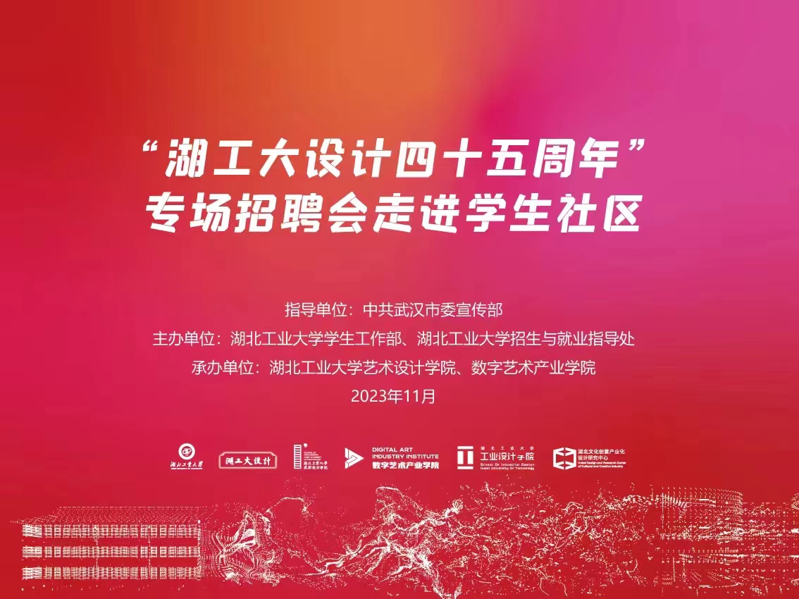 湖北工业大学设计学科创建45周年来,为国家培养了近两万名优秀设计与管理人才,百余名毕业生在知名大学中担任校院领导或学术带头人,涌现出一批大师级人物和杰出企业家,形成“湖工大设计”品牌效应,为我国当代设计事业高质量发展源源不断贡献力量。本次活动期间在湖北工业大学学生“一站式”社区驿站举办“湖工大设计 四十五周年”专场招聘会,一批武汉数字文化企业招才引智,有助于2024届设计类毕业生更充分、更高质量就业。