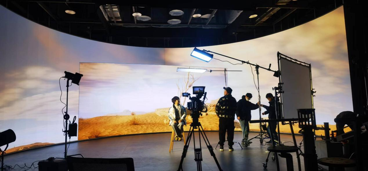 数字艺术产业学院的虚拟制片实验室占地337平方米,是全国高校中唯一具备VP/XR虚拟拍摄影棚,同时也是全国高校内首个搭载影视级LED立面屏的实验室,屏幕总面积78平方米,为学院师生提供了一个领先业界的创作平台。实验室拥有150余台(套)各类仪器设备,包括摄像机定位跟踪套件、虚拟制作服务器、8K、6K、4K虚拟制片电影机、电影镜头、影视灯、控光设备、剪辑调色设备等,可以满足一个电影小剧组的全套设备需求。